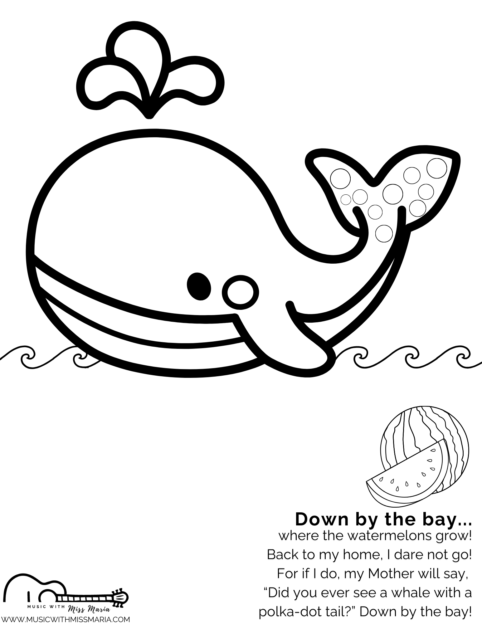 These coloring pages are based on songs we learn in class. They provide an excellent opportunity to help children continue to learn song lyrics at home and be creative in their own way!